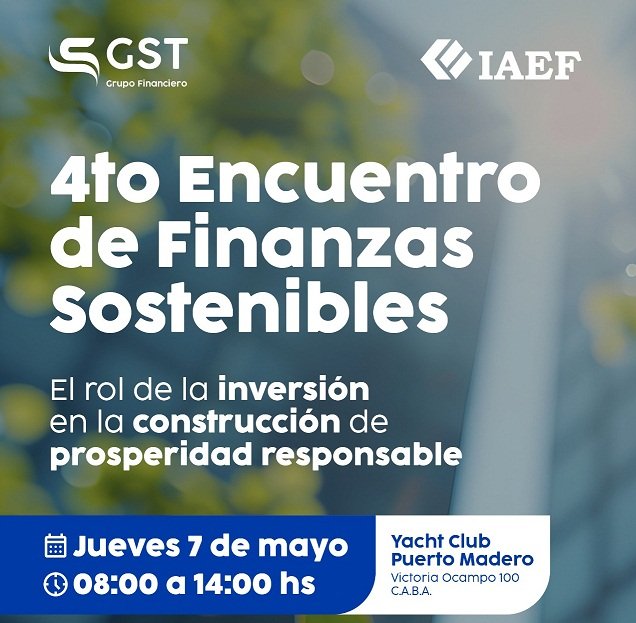 El Instituto Argentino de Ejecutivos de Finanzas (IAEF) realizará el 4° Encuentro de Finanzas Sostenibles el próximo 7 de mayo en el Yacht Club Puerto Madero, de 08:30 a 13:30. Bajo el lema “El rol de la inversión en la construcción de prosperidad responsable”, la jornada busca consolidar a las finanzas como un motor clave para acelerar la transición hacia modelos de negocio sostenibles.